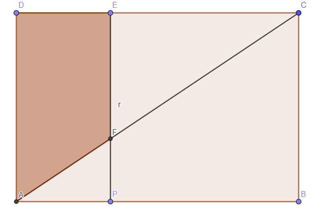 Considere um retângulo ABCD, de lados AB = 12 e Ad = 8, e um ponto P construído sobre o lado AB. Traçando a reta r perpendicular ao lado AB que passa pelo ponto P, determina-se o polígono ADEF, em que E e F são pontos de interseção de r com os segmentos DC e AC, respectivamente, como mostra a figura abaixo.